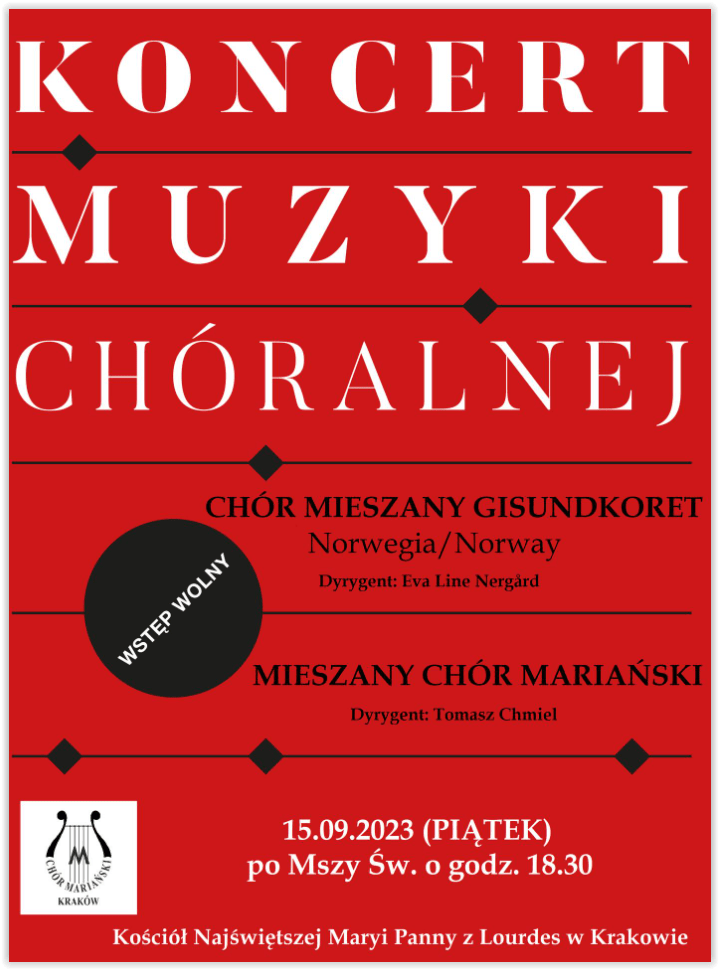 Mieszany Chór Mariański – dyr. Tomasz Ślusarczyk , Krakowska Młoda Filharmonia – dyr. Tomasz Chmiel
